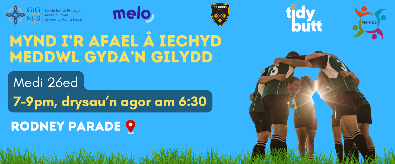 Fel rhan o'u hymrwymiad i iechyd cymunedol, mae Dreigiau Casnewydd yn falch o gyhoeddi y byddant yn cynnal digwyddiad Iechyd Meddwl a Lles ddydd Iau 26ain Medi rhwng 7 a 9pm yng nghartref rygbi Gwent, Rodney Parade. Nod y fenter bwysig hon yw codi ymwybyddiaeth a darparu adnoddau sy'n canolbwyntio ar iechyd meddwl a lles dynion.